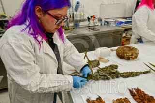 CIUDAD DE MÉXICO, 30ENERO2024.- Hace más de un milenio, en un paraje del actual estado de Coahuila, generaciones de hombres y mujeres dedicados a la caza y la recolección fueron inhumadas en una caverna conocida como la Cueva de la Candelaria; sus restos óseos y los objetos que dejaron tras de sí conforman un importante acervo que es investigado y preservado desde la Secretaría de Cultura federal y el Instituto Nacional de Antropología e Historia (INAH). En este sentido, destacan los avances del Proyecto de conservación de bienes culturales de origen orgánico de la Cueva de la Candelaria, llevado a cabo por la Coordinación Nacional de Conservación del Patrimonio Cultural (CNCPC) del INAH, desde 2013. Esta iniciativa de largo aliento emplea estudios científicos para conocer el origen biológico de las fibras usadas por los cazadores-recolectores, así como técnicas de arqueología experimental para entender el modo de tejer cestas, redes, sandalias, bolsas, cuerdas u ornamentos corporales, como collares y orejeras. FOTO: INAH/CUARTOSCURO.COM