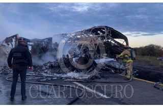 MAZATLÁN, SINALOA, 30ENERO2024.- Al menos 18 muertos y 20 heridos dejó este martes un accidente de carretera registrado en Sinaloa, donde un autobús de pasajeros se estrelló contra un tráiler en la carretera Culiacán-Mazatlán, informó la Guardia Nacional. FOTO: GUARDIA NACIONAL/CUARTOSCURO.COM