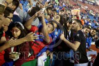 CIUDAD DE MÉXICO, 30ENERO2024. El jugador de Xolos y ex portero de Cruz Azul, Jesús Corona se toma fotografías con aficionados que coreaban su nombre previo al partido de fútbol Cruz Azul vs Tijuana correspondiente a la jornada 4 del Torneo Clausura 2024 de Liga BBVA MX, en el Estadio Ciudad de los Deportes. FOTO: EDGAR NEGRETE LIRA/CUARTOSCURO.COM