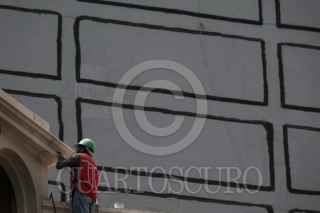 CIUDAD DE MÉXICO, 31ENERO2024.- Un trabajador de construcción realiza obras de restauración y remodelación en la facha de un edificio al cruce de avenida Álvaro Obregón y la calle de Orizaba en la colonia Roma, alcaldía Cuauhtémoc. FOTO: GALO CAÑAS/CUARTOSCURO.COM