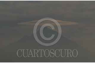 CUERNAVACA, MORELOS, 01FEBRERO2024.- Una nube lenticular con curiosa forma se posa encima del cráter del volcán Popocatépetl. Imagen tomada esta mañana desde Ocotepec, al norte de Cuernavaca. FOTO: MARGARITO PÉREZ RETANA/CUARTOSCURO.COM