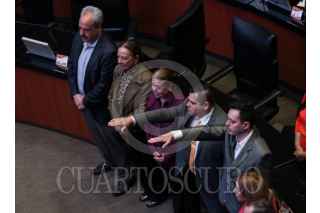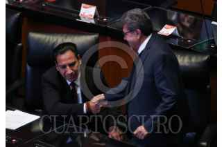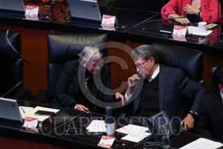CIUDAD DE MÉXICO, 01FEBRERO2024.- Miguel Ángel Mancera y Dante Delgado Rannauro Durante sesión en la Cámara de Senadores. FOTO: ANDREA MURCIA /CUARTOSCURO.COM
