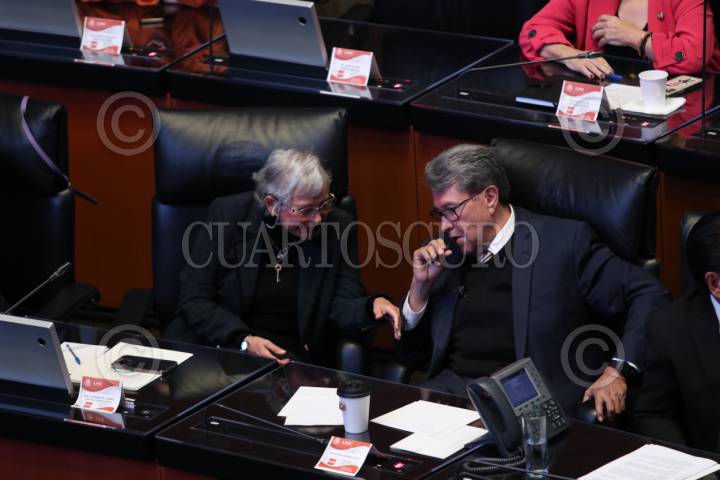 CIUDAD DE MÉXICO, 01FEBRERO2024.- Ricardo Monreal y Olga Sánchez Cordero durante sesión en la Cámara de Senadores. FOTO: ANDREA MURCIA /CUARTOSCURO.COM