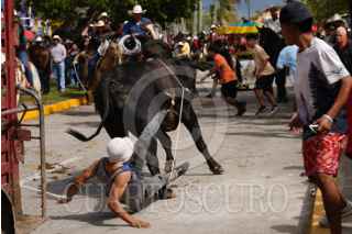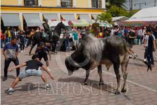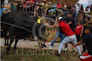 TLACOTALPAN, VERACRUZ, 01FEBRERO2024.- Pobladores y turistas se aglomeraron en la avenida principal de la cabecera municipal de Tlacotalpan para el tradicional embalse de toros como parte de las Fiestas de la Candelaria en su año 247; En esta edición 6 toros fueron liberados ante una multitud de personas que por la adrenalina y emoción corretearon y agredieron a los toros durante los festejos, mientras los animales buscaban defenderse dejaron como resultado más de 6 personas heridas, según las autoridades locales. Activistas por los derechos de los animales se han pronunciado en contra por la continuidad de estas tradiciones y el reciente regreso de las corridas de toros en la plaza México. FOTO: VICTORIA RAZO/CUARTOSCURO.COM