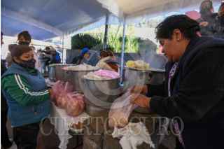 OCOYOACAC, ESTADO DE MÉXICO, 02FEBRERO2024.- Se dieron cita a temprana hora 30 productoras de tamales de ollita en la explanada municipal de Ocoyoacac como parte de la 11 Feria del Tamal dando inicio este 2 de febrero en el Día de la Candelaria, estos tamales son considerados patrimonio gastronómico del municipio, con esta feria se busca conservar la tradición y elaboración artesanal de este alimento, algunos sabores sin salsa verde, pepita, mole, rajas, jitomate, acompañado de atoles de diversos sabores. FOTO: CRISANTA ESPINOSA AGUILAR /CUARTOSCURO.COM
