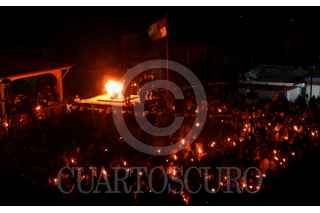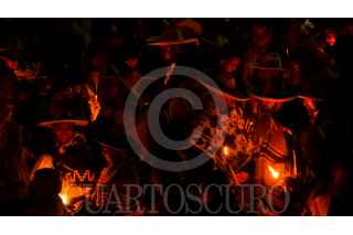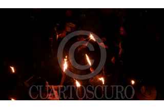 OCUMICHO, MICHOACÁN, 02FEBRERO2024.- Como cada primero de febrero, anoche, cientos de personas de las cuatro regiones purépechas de la Ciénega de Zacapu, Región Lacustre, Cañada de los Once Pueblos y Meseta Purépecha celebraron el inicio de un nuevo ciclo de vida con el encendido del Fuego Nuevo en el Año Nuevo o kurhíkuaeri k'uinchekua, que significa Dios del Fuego. Poco antes de la media noche, los cargueros inician con los preparativos para encender el Fuego Nuevo; todos se reúnen y rodean la yácata que se colocó en medio de la plaza central de Ocumicho, el sonido de los caracoles anuncia que está por iniciar la ceremonia, todos guardan silencio y esperan a que la madera que fue colocada en la cúspide empiece a arder, así las llamas empiezan a subir y con ello se inicia el Nuevo Año Purépecha. El 1 de febrero, la constelación de Orión estuvo a la mitad de su trayecto y con ello inicia el nuevo ciclo de vida; otro de los significados que se da a esta tradición es el inicio del ciclo agrícola. Durante la ceremonia también se determinó que el encendido del próximo año será en Santa Clara del Cobre. FOTO: GRACIELA LÓPEZ/CUARTOSCURO.COM