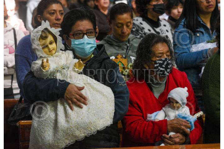 TOLUCA, ESTADO DE MÉXICO, 02FEBRERO2024.- Como parte de la celebración del Día de la Candelaria fieles católicos acudieron a la Catedral de Toluca a escuchar misa con las imágenes del Niño Dios ataviado con diversos trajes y bendecirlos. FOTO: CRISANTA ESPINOSA AGUILAR /CUARTOSCURO.COM