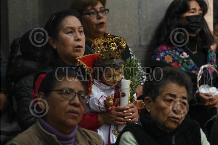 TOLUCA, ESTADO DE MÉXICO, 02FEBRERO2024.- Como parte de la celebración del Día de la Candelaria fieles católicos acudieron a la Catedral de Toluca a escuchar misa con las imágenes del Niño Dios ataviado con diversos trajes y bendecirlos. FOTO: CRISANTA ESPINOSA AGUILAR /CUARTOSCURO.COM