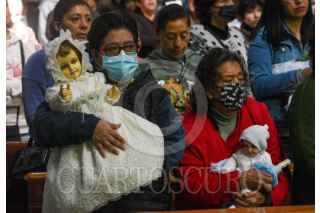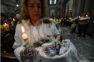 TOLUCA, ESTADO DE MÉXICO, 02FEBRERO2024.- Como parte de la celebración del Día de la Candelaria fieles católicos acudieron a la Catedral de Toluca a escuchar misa con las imágenes del Niño Dios ataviado con diversos trajes y bendecirlos. FOTO: CRISANTA ESPINOSA AGUILAR /CUARTOSCURO.COM