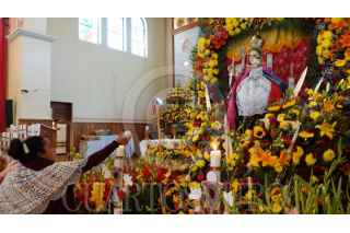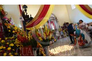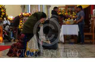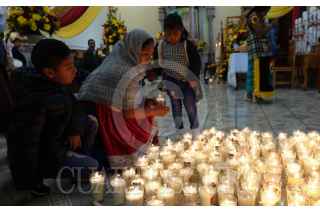 OCUMICHO, MICHOACÁN, 02FEBRERO2024.- En el marco del Día de la Candelaria, fieles creyentes purépechas acudieron a la Parroquia de San Pedro Ocumicho a pedir una oración mediante una veladora a la Virgen de la Candelaria. FOTO: GRACIELA LÓPEZ /CUARTOSCURO.COM