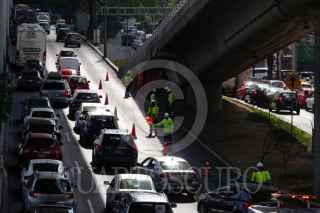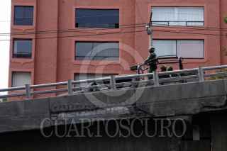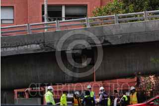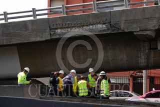 CIUDAD DE MÉXICO, 02FEBRERO2024.-Luego de diversas denuncias por parte de automovilistas autoridades capitalinas, policía de tránsito y encargados de la Autopista Urbana acudieron a inspeccionar la zona de desprendimiento del puente que desemboca en Calzada de Tlalpan. FOTOS: ROGELIO MORALES /CUARTOSCURO.COM