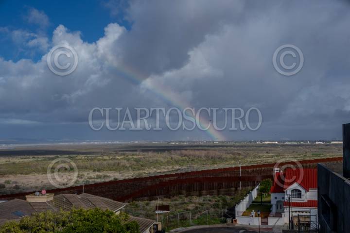 TIJUANA, BAJA CALIFORNIA, 02FEBRERO2024.Tras los días lluviosos que se registran en la región, un arcoíris se pudo apreciar en el otro lado de la frontera. Los colores de este fenómeno natural se observaron desde Tijuana por varios minutos. FOTO: OMAR MARTÍNEZ /CUARTOSCURO.COM