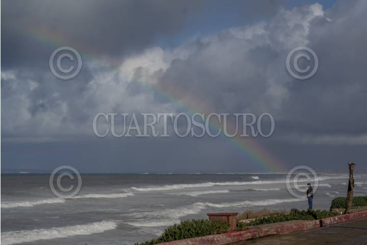 TIJUANA, BAJA CALIFORNIA, 02FEBRERO2024.Tras los días lluviosos que se registran en la región, un arcoíris se pudo apreciar en el otro lado de la frontera. Los colores de este fenómeno natural se observaron desde Tijuana por varios minutos. FOTO: OMAR MARTÍNEZ /CUARTOSCURO.COM
