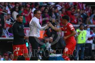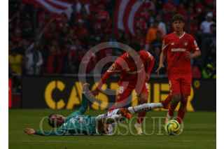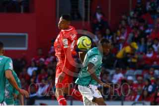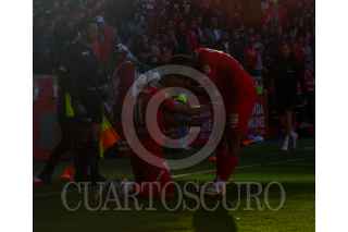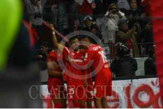 TOLUCA, ESTADO DE MÉXICO, 03FEBRERO2024.- Maximiliano Araujo delantero y Andrés Pereira medio de los Diablos de Toluca festejan una anotación ante la escuadra del León en el partido correspondiente a la jornada 5 del Torneo Clausura 2024 de la Liga MX, en el estadio Nemesio Diez, teniendo un marcador final 4-1. FOTO: CRISANTA ESPINOSA AGUILAR /CUARTOSCURO.COM