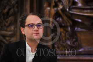 CIUDAD DE MÉXICO, 03FEBRERO2024.- Miguel Salmon del Real, director de la Orquesta Sinfónica Sinaloa de las Artes y escritor, durante la presentación de su libro "El canto eterno de la gran música" realizada en el lobby del Museo Soumaya. FOTO: MARIO JASSO/CUARTOSCURO.COM