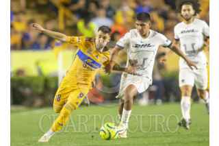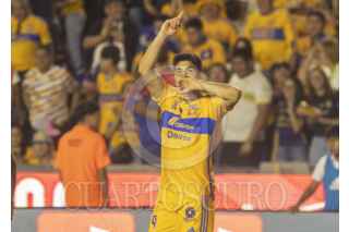 SAN NICOLÁS DE LOS GARZA, NUEVO LEÓN, 03FEBRERO2024.- Nicolás Ibáñez de Tigres, festeja el gol, ante los Pumas, en el estadio Universitario, partido correspondiente a la jornada 5 de la Clausura 2024, de la Liga, MX. Marcador Final: Tigres: 2 - Pumas: 2. FOTO: GABRIELA PÉREZ MONTIEL / CUARTOSCURO.COM
