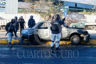 CHILPANCINGO, GUERRERO, 05FEBRERO2024.- La mañana de este lunes, cuatro chóferes del transporte público fueron atacados en diferentes puntos de la capital de Guerrero; dos murieron y otro fue hospitalizado en condiciones graves, un taxi fue incendiado en el boulevard que va hacia Petaquillas con un cadáver en su interior, las urvans que llegan del circuito Río Azul restringieron su circulación y dejaron de entrar a la ciudad. Antes de las 07:00 horas, sobre la avenida Juan Ruiz de Alarcón, justo frente al mercado del barrio de San Francisco se registró un ataque a balazos en contra del chofer de la urvan número 32, de la ruta que va de Chilpancingo hacia la comunidad de Petaquillas. En el lugar quedó tirado al costado de la unidad el chofer, que ya no presentaba signos vitales cuando llegaron paramédicos de Protección Civil. La policía estableció un cerco perimetral para resguardar los trabajos del personal de la Fiscalía General del Estado (FGE) y del Servicio Médico Forense (Semefo). FOTO: DASSAEV TÉLLEZ ADAME/CUARTOSCURO.COM