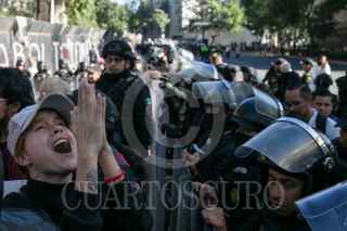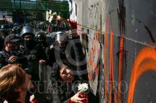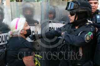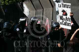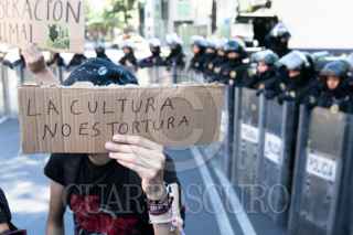 CIUDAD DE MÉXICO, 05FEBRERO2024.- Activistas antitaurinos se manifestaron en la Plaza de Toros México, en donde se llevó a cabo la corrida de aniversario, esto en el marco de las controversias jurídicas que se han suscitado en la última semana para detenerlas, las presentes exigen detener este espectáculo al que califican de maltrato animal, policías de la SSC encapsularon a los manifestantes. FOTO: MOISÉS PABLO/CUARTOSCURO.COM