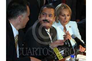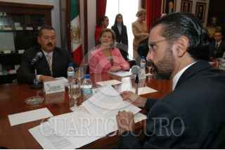 MÉXICO, D.F., 20JUNIO2007.- Luis Manuel Fuentes, Manlio Fabio Beltrones, presidente de la mesa directiva de la Comisión Permanente y Amira Griselda Gómez, senadora del PRI, ofrecieron una conferencia de prensa para hablar sobre las mesas de analisis sobre el tema de trata de personas que se realizarán en la sede del senado de la República. FOTO: MOISÉS PABLO/CUARTOSCURO.COM