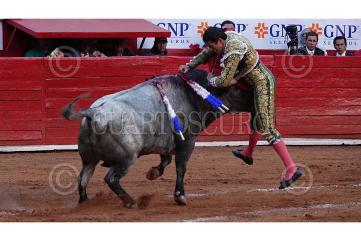 CIUDAD DE MÉXICO, 05FEBRERO2024.- En el marco de la celebración de su aniversario 78, el torero Ernesto Javier Tapia apuñala a un toro durante la corrida de aniversario en la Plaza de Toros México. FOTO: GRACIELA LÓPEZ /CUARTOSCURO.COM