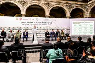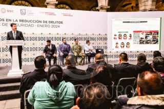 CIUDAD DE MÉXICO. 06FEBRERO2024.- El Jefe de Gobierno, Martí Batres Guadarrama, presenta los Resultados en la Reducción de Delitos. Informe de Seguridad Enero 2024. También asisten el secretario de Gobierno, Ricardo Ruiz Suárez; el secretario de Seguridad Ciudadana, Pablo Vázquez Camacho; el magistrado presidente del Poder Judicial de la Ciudad de México, Rafael Guerra Álvarez; el coordinador general de Investigación Territorial en ejercicio de la suplencia de la persona titular de la Fiscalía General de Justicia de la Ciudad de México, Ulises Lara López. El evento tuvo lugar en el patio central del Palacio del Ayuntamiento. FOTO: GOBIERNO DE LA CIUDAD/CUARTOSCURO.COM