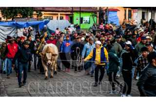 SAN JUAN CHAMULA, CHIAPAS, 07FEBRERO2024.- Dan inició las actividades de uno de los carnavales más esperados de la región de Los Altos de Chiapas para los habites tsotsiles. Durante las primeras actividades se llevaron a cabo rituales para bendecir la siguiente siembra de la comunidad. Autoridades religiosas tradicionales del Barrio de San Sebastián realizaron las ofrendas correspondientes para continuar con el Carnaval. FOTO: ISABEL MATEOS /CUARTOSCURO.COM