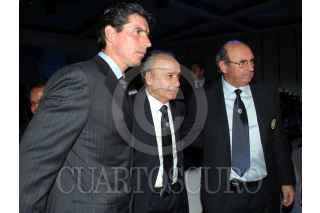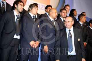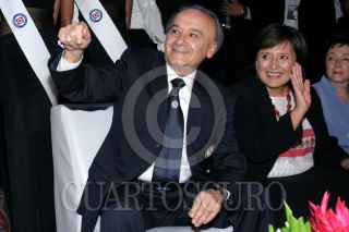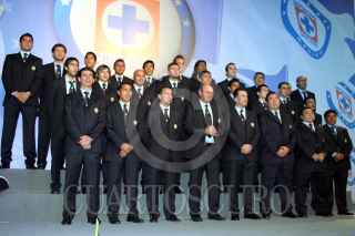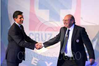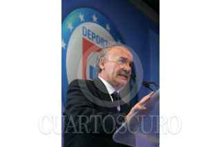 MÉXICO, D.F., 20JUNIO2007.- Guillermo Álvarez, presidente de Cruz Azul, y Xóchitl Gálvez, integrante del Consejo Consultivo de los cementeros, durante la presentación del equipo celeste que competirá en el próximo torneo Apertura 2007. FOTO: ISAAC ESQUIVEL/CUARTOSCURO.COM
