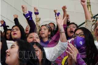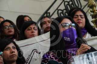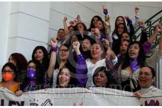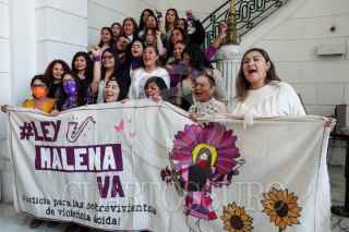 CIUDAD DE MÉXICO, 08FEBRERO2024.- Las activistas Maria Elena Ríos y Elisa Xolalpa, víctimas de ataques con ácido, celebraron en el Congreso de la Ciudad de México la aprobación de la llamada "Ley Malena", promovida por la diputada Marcela Fuentes Castillo. Este cambio jurídico integra los ataques con ácido a mujeres como tentativa de feminicidio y será castigado con hasta 12 años de cárcel. FOTO: GALO CAÑAS/CUARTOSCURO.COM