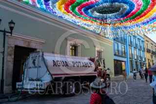 OAXACA DE JUÁREZ, 08FEBRERO2024.- La falta de abastecimiento de agua potable en la capital del estado ha provocado que los establecimientos obtengan el líquido a través de pipas. Dicha crisis es producto del colapso de la infraestructura de distribución del agua, pues en el recorrido por las tuberías se desperdicia hasta el 50 %, según informan las autoridades municipales. FOTO: TOMASACOSTA/CUARTOSCURO.COM
