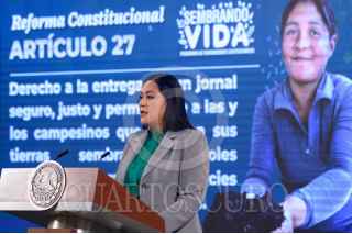 CIUDAD DE MÉXICO, 09FEBRERO2024.- Ariadna Montiel Reyes, secretaria de Bienestar, durante la conferencia matutina desde Palacio Nacional. FOTO: PRESIDENCIA/CUARTOSCURO.COM