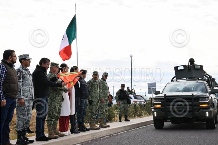 FRESNILLO, ZACATECAS, 10FEBRERO2024.- David Monreal Ávila, gobernador del Estado, dio la bienvenida a 800 elementos del Ejército Mexicano que arribaron este sábado a Zacatecas para fortalecer la estrategia de paz. En su mensaje a las tropas que operarán en el territorio estatal, les dijo que, a pesar de los obstáculos y lo complejo del camino, no se puede permitir dar un solo paso atrás en el proceso de pacificación. El acto se llevó a cabo en el 97 Batallón de Infantería del Ejército Mexicano, de este municipio. FOTO: ESPECIAL /CUARTOSCURO.COM