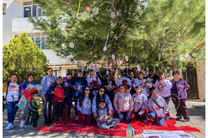 FRESNILLO, ZACATECAS, 11FEBRERO2024.- Colectivos de familiares de desaparecidos en Zacatecas en compañía de Sangre de mi Sangre realizaron una actividad de tejido en el Jardín Obelisco en el centro histórico del municipio. Además de tejer la representación simbólica de las miles de víctimas en el país, las madres arreglaron el árbol de la memoria que se mantiene en el mismo espacio. FOTO: ADOLFO VLADIMIR /CUARTOSCURO.COM
