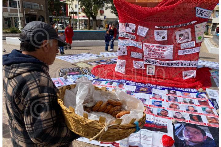 FRESNILLO, ZACATECAS, 11FEBRERO2024.- Colectivos de familiares de desaparecidos en Zacatecas en compañía de Sangre de mi Sangre realizaron una actividad de tejido en el Jardín Obelisco en el centro histórico del municipio. Además de tejer la representación simbólica de las miles de víctimas en el país, las madres arreglaron el árbol de la memoria que se mantiene en el mismo espacio. FOTO: ADOLFO VLADIMIR /CUARTOSCURO.COM