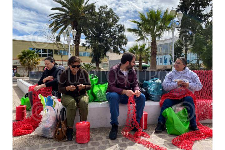 FRESNILLO, ZACATECAS, 11FEBRERO2024.- Colectivos de familiares de desaparecidos en Zacatecas en compañía de Sangre de mi Sangre realizaron una actividad de tejido en el Jardín Obelisco en el centro histórico del municipio. Además de tejer la representación simbólica de las miles de víctimas en el país, las madres arreglaron el árbol de la memoria que se mantiene en el mismo espacio. FOTO: ADOLFO VLADIMIR /CUARTOSCURO.COM