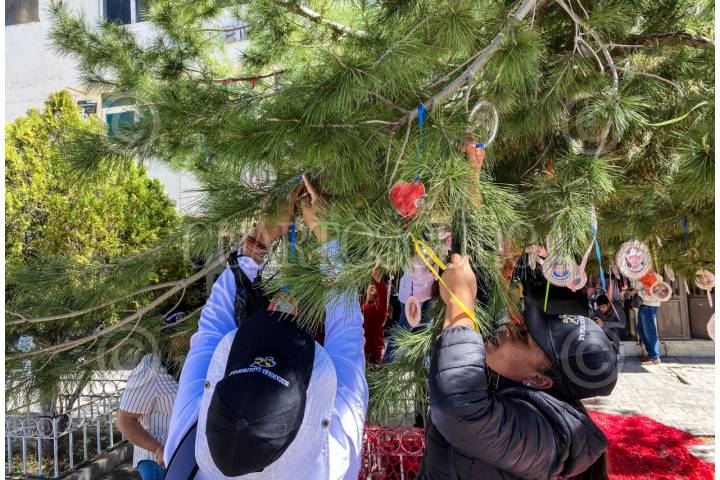 FRESNILLO, ZACATECAS, 11FEBRERO2024.- Colectivos de familiares de desaparecidos en Zacatecas en compañía de Sangre de mi Sangre realizaron una actividad de tejido en el Jardín Obelisco en el centro histórico del municipio. Además de tejer la representación simbólica de las miles de víctimas en el país, las madres arreglaron el árbol de la memoria que se mantiene en el mismo espacio. FOTO: ADOLFO VLADIMIR /CUARTOSCURO.COM