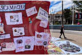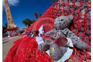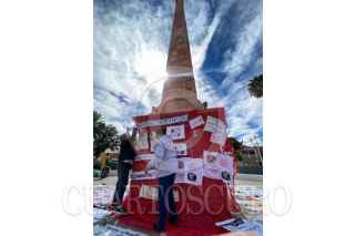 FRESNILLO, ZACATECAS, 11FEBRERO2024.- Colectivos de familiares de desaparecidos en Zacatecas en compañía de Sangre de mi Sangre realizaron una actividad de tejido en el Jardín Obelisco en el centro histórico del municipio. Además de tejer la representación simbólica de las miles de víctimas en el país, las madres arreglaron el árbol de la memoria que se mantiene en el mismo espacio. FOTO: ADOLFO VLADIMIR /CUARTOSCURO.COM