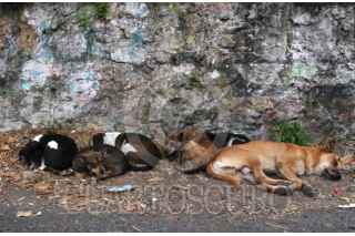 CUERNAVACA, MORELOS, 12FEBRERO2024.- Una jauría de perros se ovillan para dormir en una calle de la colonia Lagunilla, al poniente de la capital de Morelos. FOTO: MARGARITO PÉREZ RETANA/CUARTOSCURO.COM