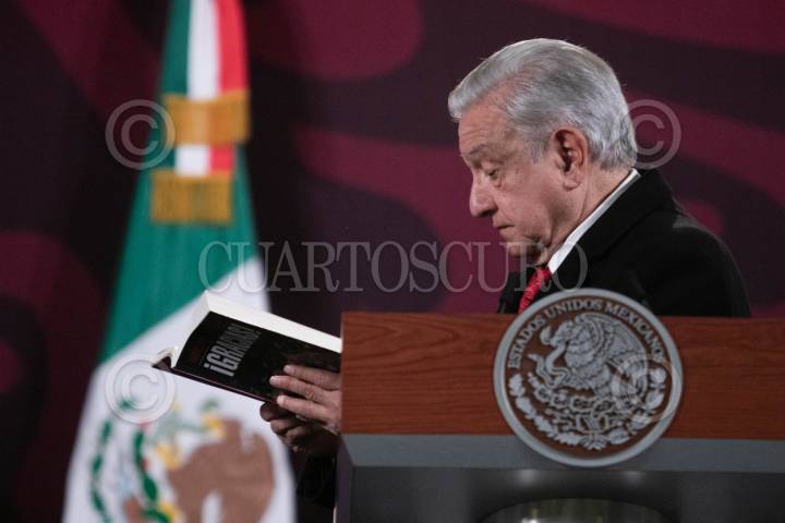 CIUDAD DE MÉXICO, 12FEBRERO2024.- Andrés Manuel López Obrador, Presidente de México, leyó fragmentos de su bueno libro "Gracias" que recientemente salió a la venta durante la mañanera en Palacio Nacional. FOTO: MOISÉS PABLO/CUARTOSCURO.COM