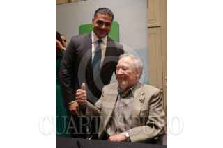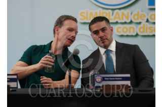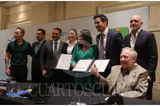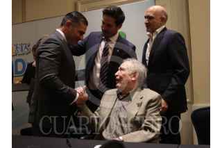 CIUDAD DE MÉXICO, 12FEBRERO2024.- Manuel Velazco y Víctor González Dr. Simi, presidente fundador GRUPM durante la firma del convenio de la iniciativa Simi PADi simi Plan de ayuda a personas con discapacidad entre Fundación Simi y Partido Verde Ecologista. FOTO: ANDREA MURCIA /CUARTOSCURO.COM