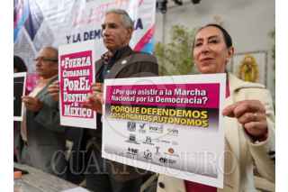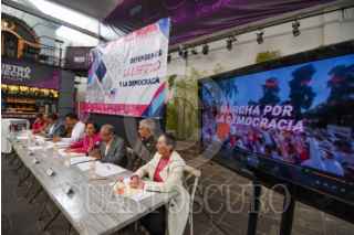 TOLUCA, ESTADO DE MÉXICO, 13FEBRERO2024.- Integrantes de diversas organizaciones civiles en Toluca anunciaron su participación en la Marcha por la Democracia que se realizará en diversas ciudades de la República Mexicana el próximo domingo 18 de febrero. FOTO: CRISANTA ESPINOSA AGUILAR /CUARTOSCURO.COM