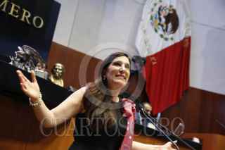 CIUDAD DE MÉXICO, 13FEBRERO2023.- Kenya López Rabadán, senadora y jefa de oficina de la candidata Xóchitl Gálvez, durante la sesión ordinaria en el Senado de la República correspondiente al Tercer Año de Ejercicio de la LXV Legislatura. FOTO: CUARTOSCURO.COM