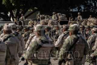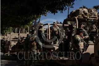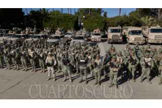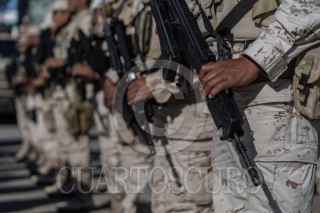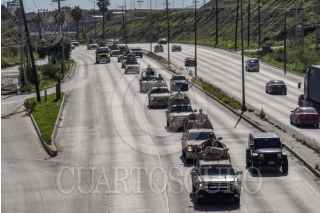 TIJUANA, BAJA CALIFORNIA, 14FEBRERO2024.- Con el arribo de 1300 soldados del ejército mexicano durante la presente semana, ya son 1700 elementos de los 2000 que esperan para reforzar la seguridad en Tijuana Los elementos arribaron por la vía aérea a la base militar de el ciprés en Ensenada desde donde recorrieron por tierra hasta Tijuana. El refuerzo forma parte de el programa nacional de seguridad que pretende inhibir la cantidad de homicidios en los 100 municipios el mayor número de la mayor incidencia de violencia en el país. En Tijuana se han registrado más de 200 homicidios, tan solo en lo que va del mes de febrero se han registrado 61 homicidios. FOTO: OMAR MARTÍNEZ /CUARTOSCURO.COM