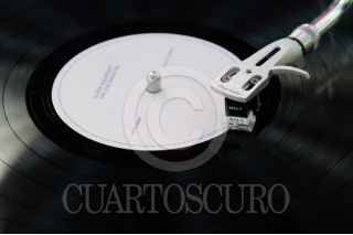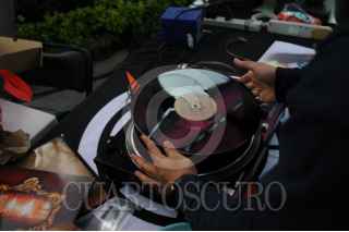 CIUDAD DE MÉXICO, 14FEBRERO2024. - Un disco de vinil suena dentro de la transmisión en e Zócalo. FOTO: DANIEL AUGUSTO /CUARTOSCURO.COM
