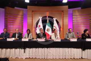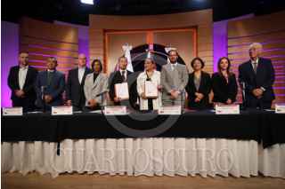 CIUDAD DE MÉXICO, 14FEBRERO2024.- José Antonio García Herrera, presidente del CIRT; Guadalupe Taddei Zavala, consejera presidenta del Instituto Nacional Electoral (INE) durante la Firma de Convenio con la Cámara Nacional de la Industria de Radio y Televisión (CIRT) e INE que se llevó a cabo en las Instalaciones de la XEW. FOTO: ANDREA MURCIA /CUARTOSCURO.COM