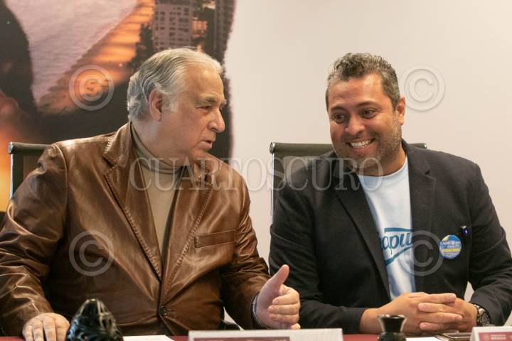 CIUDAD DE MÉXICO, 14FEBRERO2024.- Miguel Torruco Marqués, secretario de Turismo; y Santos Ramírez Cuevas, secretario de Turismo de Guerrero, ofrecieron la conferencia "Acapulco renacerá", en la cual dieron detalles de los eventos que vienen para reactivar a este puerto tras el paso del huracán Otis. Entre los eventos destacan el Abierto de Tenis y el Tianguis Turístico. FOTO: MOISÈS PABLO/CUARTOSCURO.COM