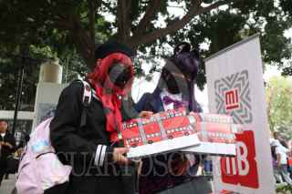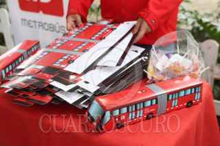 CIUDAD DE MÉXICO, 14FEBRERO2024. Se regalaron metrobuses armables por el Día del Amor y la Amistad frente a la estación de Metrobús Jardín Pushkin. FOTO: EDGAR NEGRETE LIRA/CUARTOSCURO.COM