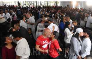 CIUDAD DE MÉXICO, 14FEBRERO2024.- Ceremonia de Bodas Colectivas 2024, en el marco del 14 de febrero, Día del Amor y la Amistad, realizada en la explanada principal del Registro Civil de la Alcaldía Cuauhtémoc. FOTO: MARIO JASSO/CUARTOSCURO.COM