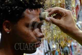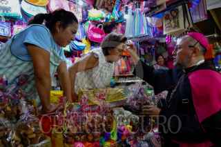 CIUDAD DE MÉXICO, 14FEBRERO2024.- El obispo de los Misioneros Cristianos, realizó un recorrido por el Mercado de la Basílica de Guadalupe para llevar hasta los locales de los vendedores la cruz de ceniza que marca el inicio de la Cuaresma y el ayuno para la religión católica. FOTOS: ROGELIO MORALES /CUARTOSCURO.COM