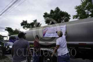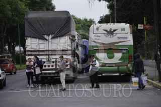 URUAPAN, MICHOACÁN. 15FEBRERO2024. Transportistas de Michoacán se movilizan este jueves en el municipio de Uruapan, en apoyo al paro nacional anunciado por la Alianza Mexicana de Organizaciones de Transportistas (AMOTAC), que exige mayores condiciones de seguridad para el sector. En la ciudad de Uruapan, el contingente de camiones se concentró en el exterior de la Central de Autobuses, para iniciar una caravana hacia la Presidencia Municipal; posteriormente, se dirigieron al Boulevard Industrial en dirección a la Autopista Siglo XXI, donde impiden el paso de vehículos de carga y únicamente permiten el paso de vehículos particulares. FOTO: JUAN JOSÉ ESTRADA SERAFÍN /CUARTOSCURO.COM