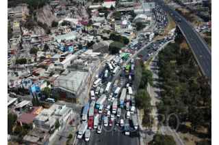 ECATEPEC ESTADO DE MÉXICO, 15FEBRERO2024.- Transportistas pertenecientes a la Alianza Mexicana de Organización de Transportistas, realizaron una protesta y un bloqueos en diversas arterias de la ciudad, esto para exigir a las autoridades una mesa de diálogo, para abordar el tema de violencia e inseguridad en carreteras del país. FOTOS: ROGELIO MORALES /CUARTOSCURO.COM
